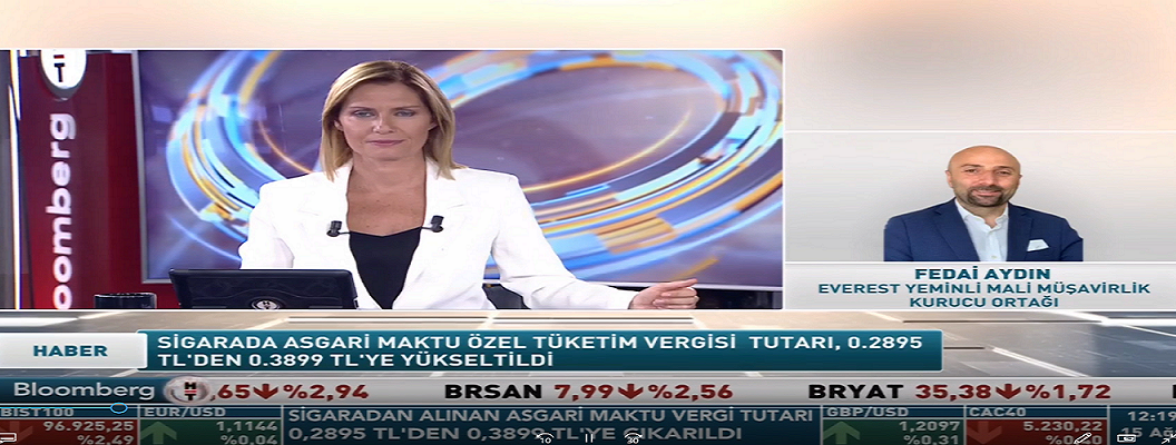 Kurucu Ortağımız Yeminli Mali Müşavir Fedai AYDIN, Bloomberg HT kanalında yayınlanan Hande BERKTAN’ın sunduğu Ara Haber programına telefonla bağlanarak sigaradaki asgari maktu vergi artışının bütçeye ve enflasyona etkilerini değerlendirdi.